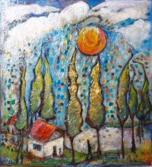 Acrylique sur carton entoilé de la période décomposition de la lumière, 34x37cm